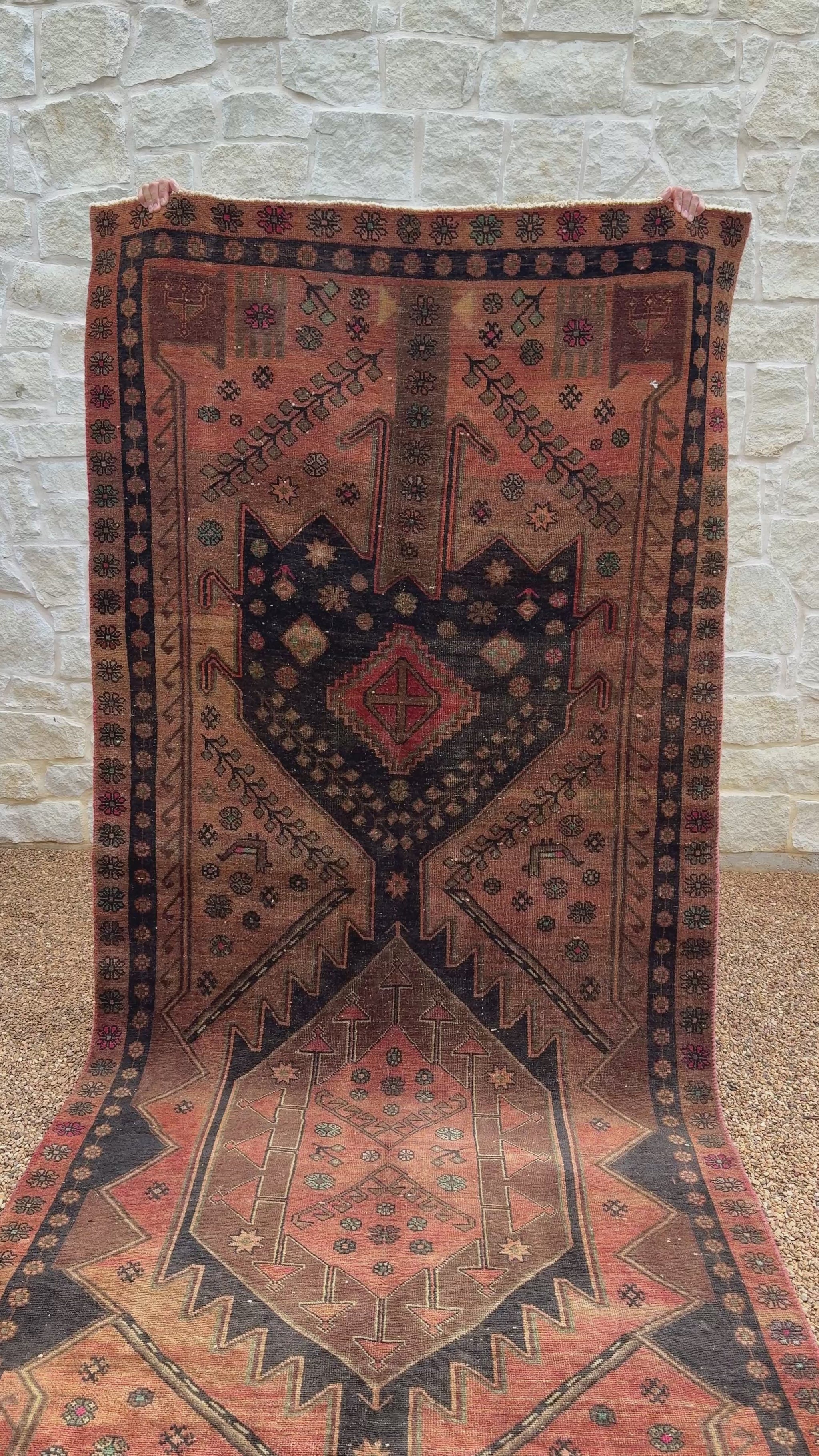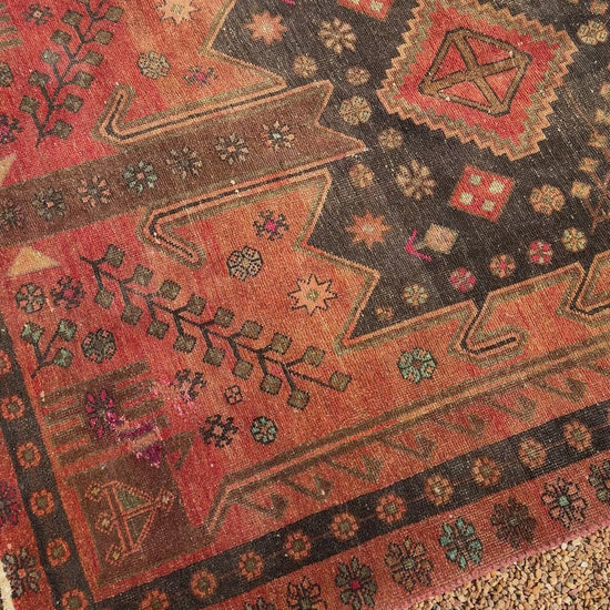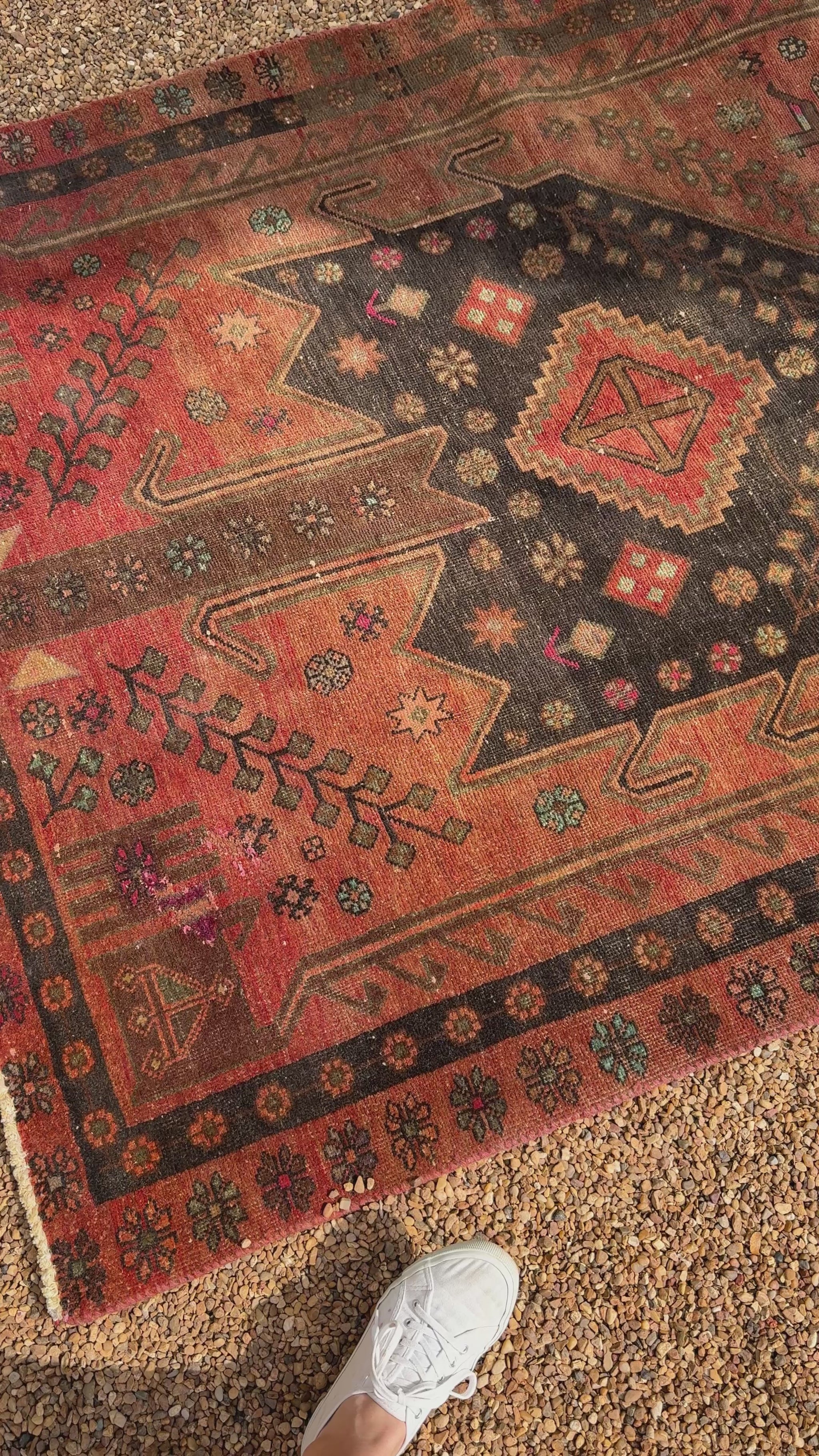 All of our vintage rugs are 100% wool, handmade, colored with natural dyes and authentically aged, which means they may show signs of wear consistent with their history—such as slight fading, fringe wear, or minor imperfections. These characteristics are not flaws but part of the natural patina that gives each piece its unique charm and story. We believe these details add to the timeless beauty and authenticity of vintage rugs. Any imperfections outside of normal aging will always be noted in the description. Feel free to reach out with any questions before purchasing. You can DM us via Instagram @adornlivingrugs or email us at adornlivingcompany@gmail.com
