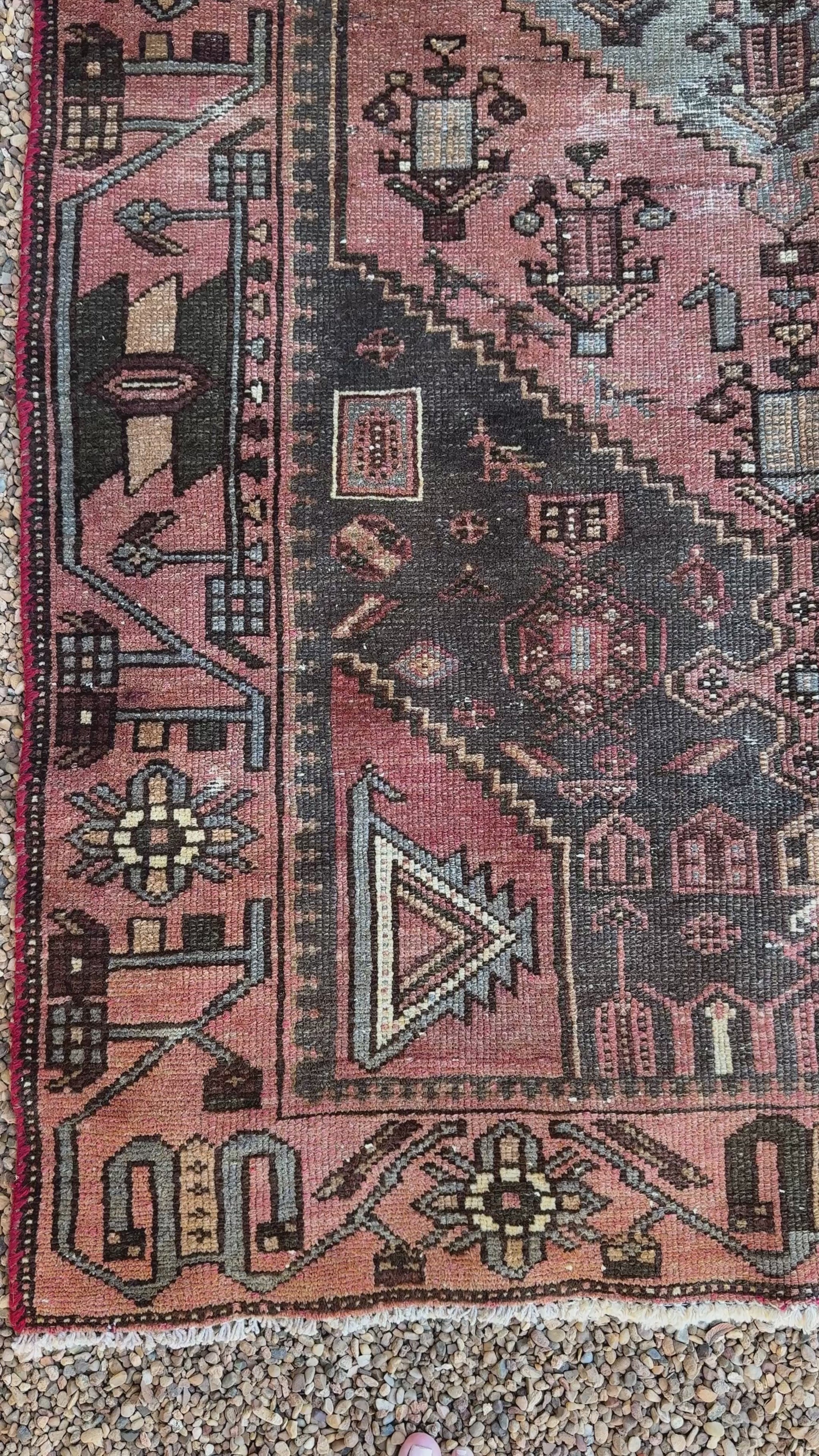 All of our vintage rugs are 100% wool, handmade, colored with natural dyes and authentically aged, which means they may show signs of wear consistent with their history—such as slight fading, fringe wear, or minor imperfections. These characteristics are not flaws but part of the natural patina that gives each piece its unique charm and story. We believe these details add to the timeless beauty and authenticity of vintage rugs. Any imperfections outside of normal aging will always be noted in the description. Feel free to reach out with any questions before purchasing. You can DM us via Instagram @adornlivingrugs or email us at adornlivingcompany@gmail.com