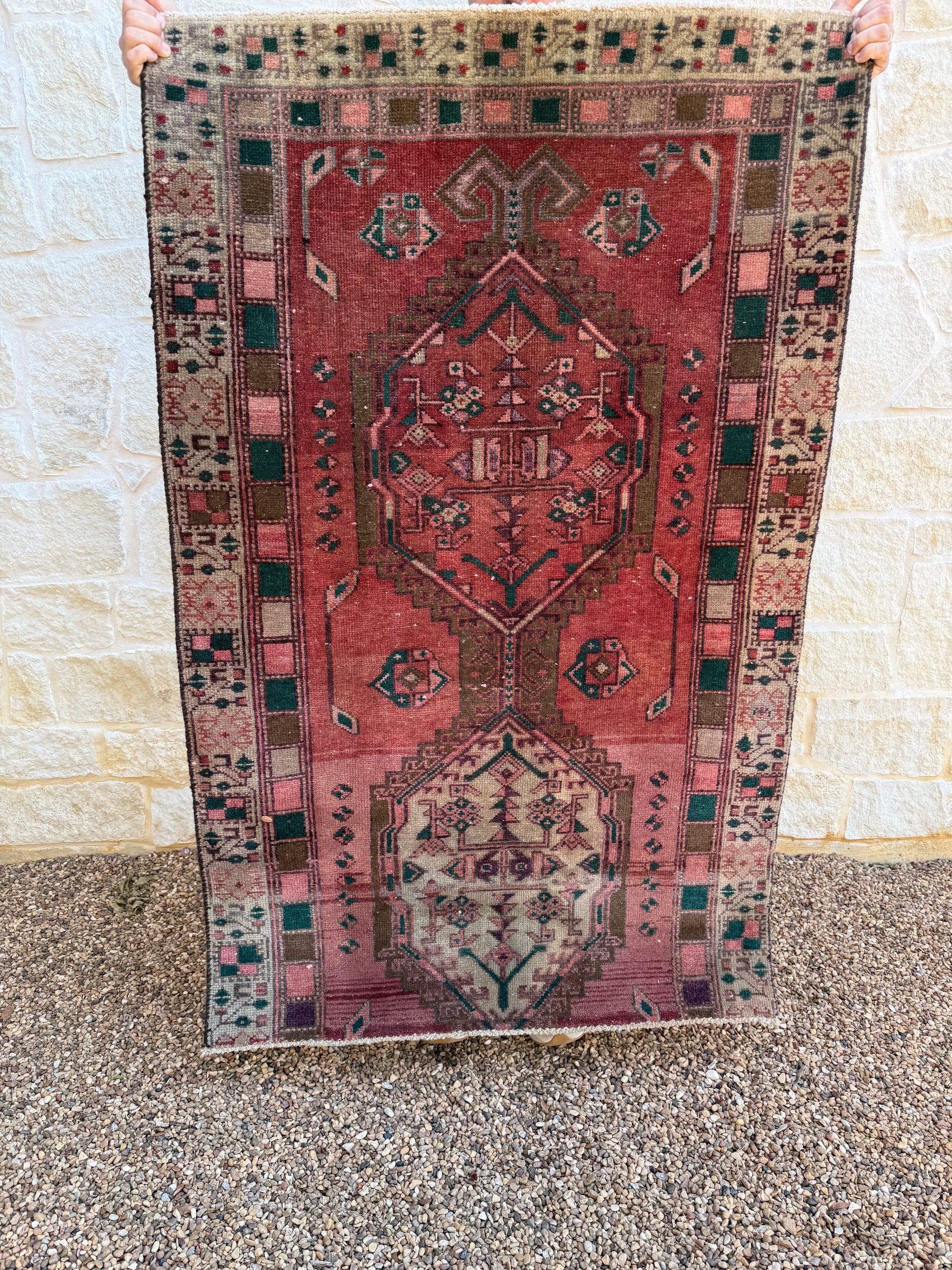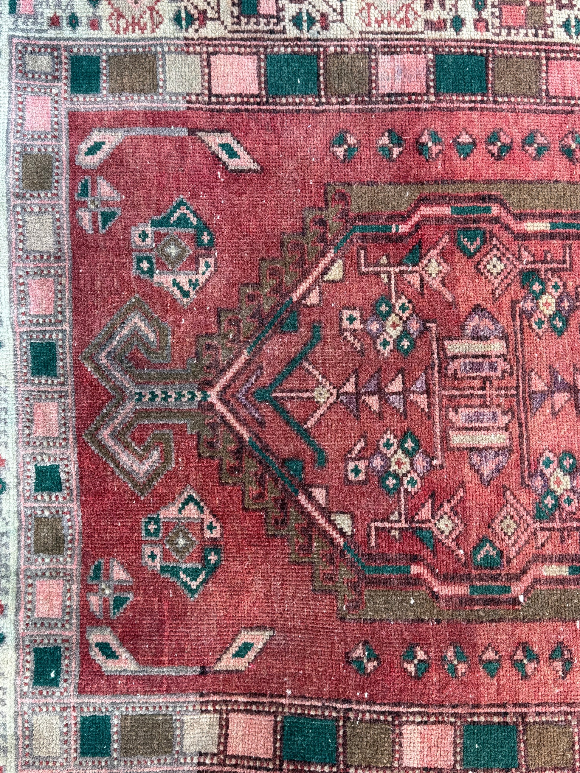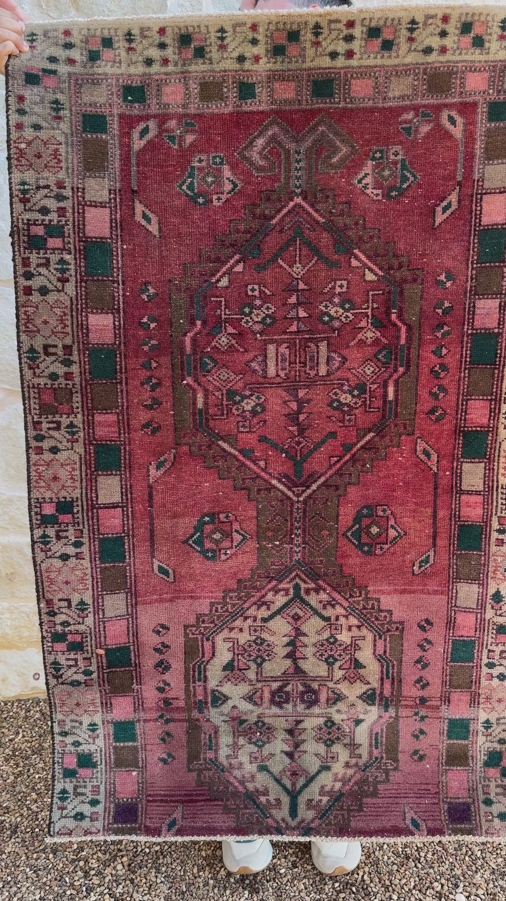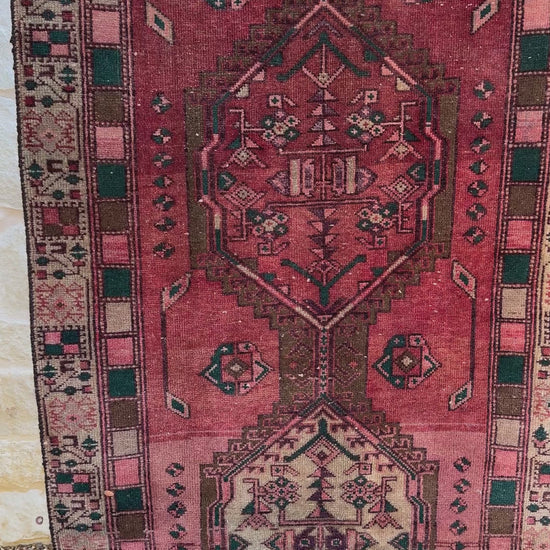 All of our vintage rugs are 100% wool, handmade, colored with natural dyes and authentically aged, which means they may show signs of wear consistent with their history—such as slight fading, fringe wear, or minor imperfections. These characteristics are not flaws but part of the natural patina that gives each piece its unique charm and story. We believe these details add to the timeless beauty and authenticity of vintage rugs. Any imperfections outside of normal aging will always be noted in the description. Feel free to reach out with any questions before purchasing. You can DM us via Instagram @adornlivingrugs or email us at adornlivingcompany@gmail.com